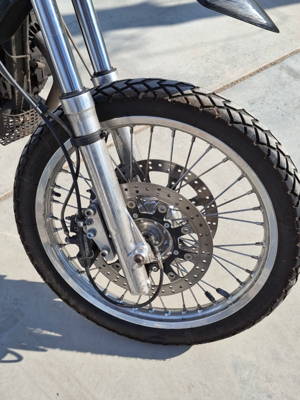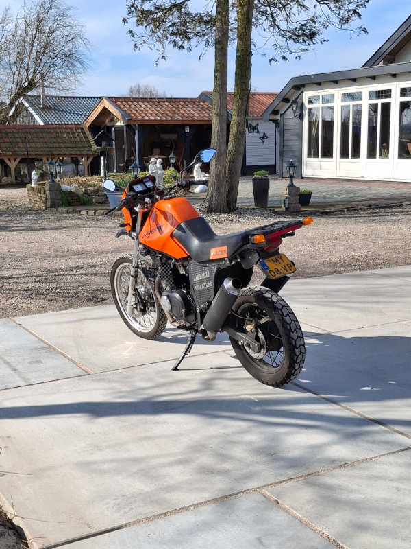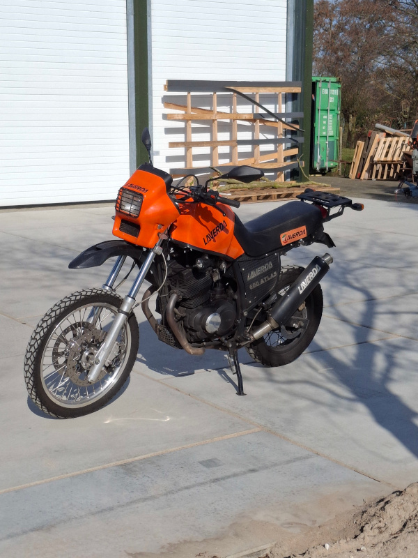 Is voorzien van 32mm Dell’Orto carburateurs, voorwiel van Haans wiel, dubbele remschijf, speciale rem klauw, radiale rempomp, lichte valschade, de motor word verkocht zoals die erbij staat.